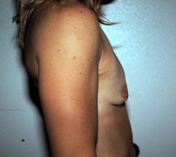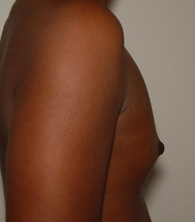 24 year old female who had considered breast augmentation for several years. Submuscular saline implants, periareolar incisions, right 425cc filled to 515cc, left 425cc filled to 500cc. Photos show 5 months post op.