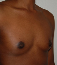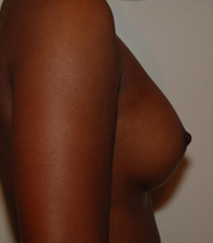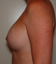 45 year old female who underwent submuscular breast augmentation with periareolar incisions. Silicone moderate profile plus implants, 275cc on each side.