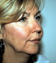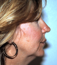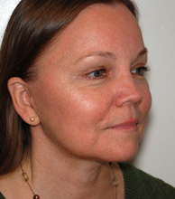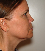 49 year old female who desired facial rejuvenation, specifically to address jowls and poor neck definition and drooping of brow area. Coronal brow lift and face lift were performed.