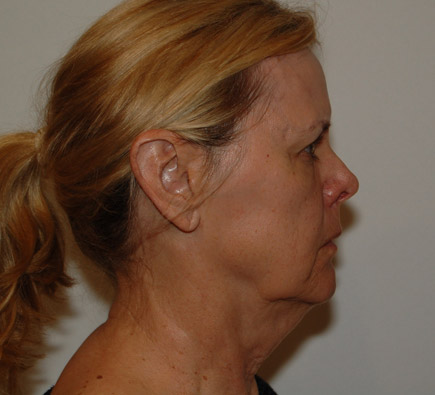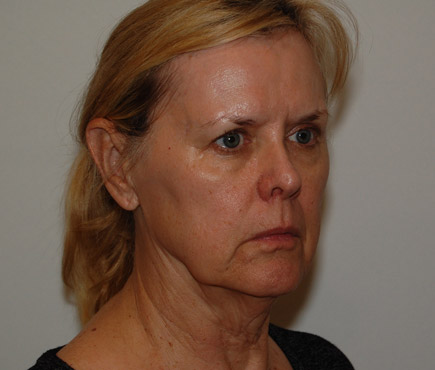 61 year old female who desired facial rejuvenation. Face lift with fat transfers to nasal labial creases and malar eminences was performed.